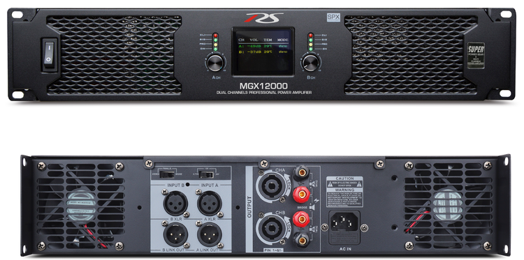 پاور آمپلی فایر قدرتمند RS مدل MGX12000 یک پاور هوشمند در کلاس H می باشد و می تواند نهایتا ۸ اسپیکر ۸ اهم را با تمام توان تامین کند . خروجی این پاور هوشمند بوده و بر مبنای میزان ورودی اسپیکر توان امپلی فایر تغییر می کند ، اتصال کوتاه و کمپرسور صوتی برخی از قابلیت های این پاور اسمارت می باشد . صفحه نمایش دیجیتال میزان دسیبل ورودی صدا و میزان حرارت پاور را بر حسب درجه سانتی گراد به نمایش می گذارد . امکان بریدج کردن پاور در این دستگاه وجود دارد و می توانید با تغییر سلکتور GAIN مسافت های طولانی کابل را پشتیبانی کنید .