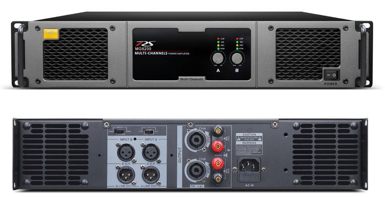 پاور آمپلی فایر قدرتمند RS مدل MG8200 یک پاور هوشمند در کلاس H می باشد و می تواند نهایتا ۸ اسپیکر ۸ اهم را با تمام توان تامین کند . خروجی این پاور هوشمند بوده و بر مبنای میزان ورودی اسپیکر توان امپلی فایر تغییر می کند ، اتصال کوتاه و کمپرسور صوتی برخی از قابلیت های این پاور اسمارت می باشد . امکان بریدج کردن پاور در این دستگاه وجود دارد و می توانید با تغییر سلکتور GAIN مسافت های طولانی کابل را پشتیبانی کنید .