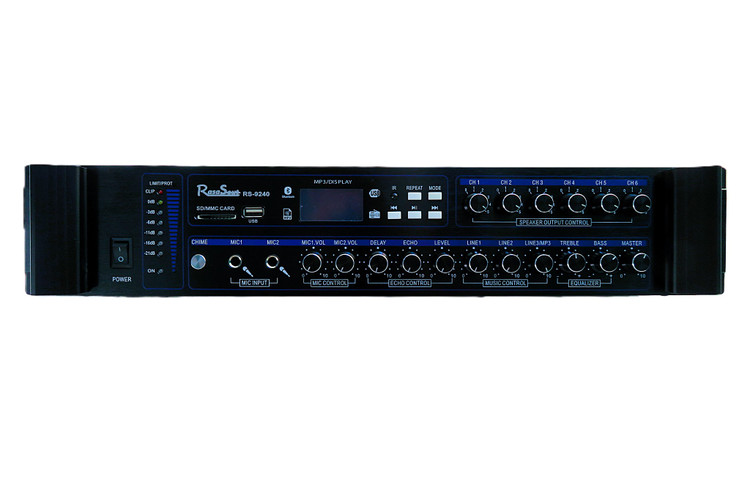 اکو آمپلی فایر رساصوت مدل RS-9180 با توان 180 وات واقعی برای اتصال انواع بلندگو های سقفی و ستونی و دکوراتیو مناسب می باشد. خروجی 180 وات برای خط اهمی و ولتی با 6 زون سلکتوری ولوم مجزا از جمله مشخصه های ضروری یک آمپلی فایر رک مونت به حساب می آید.